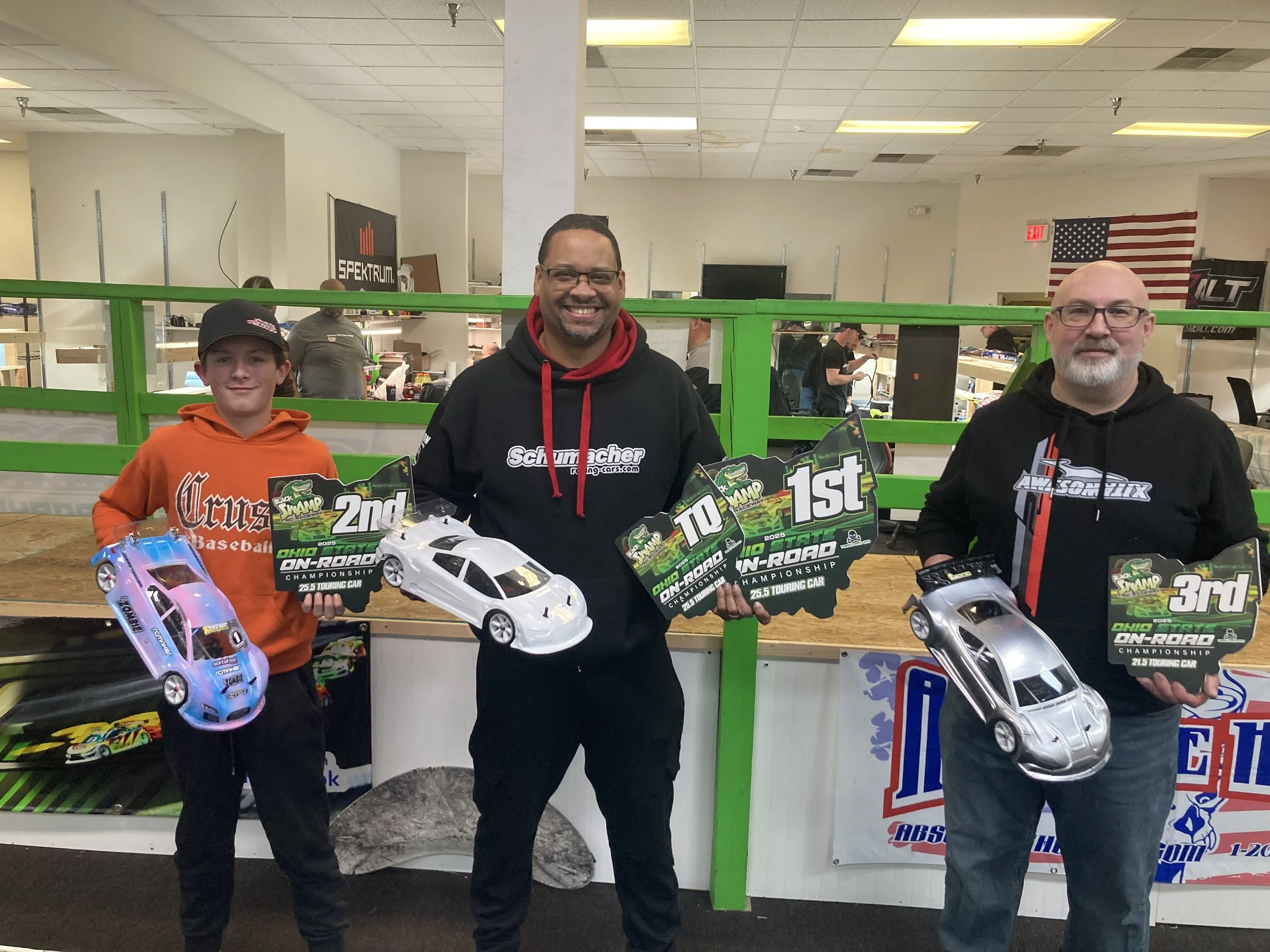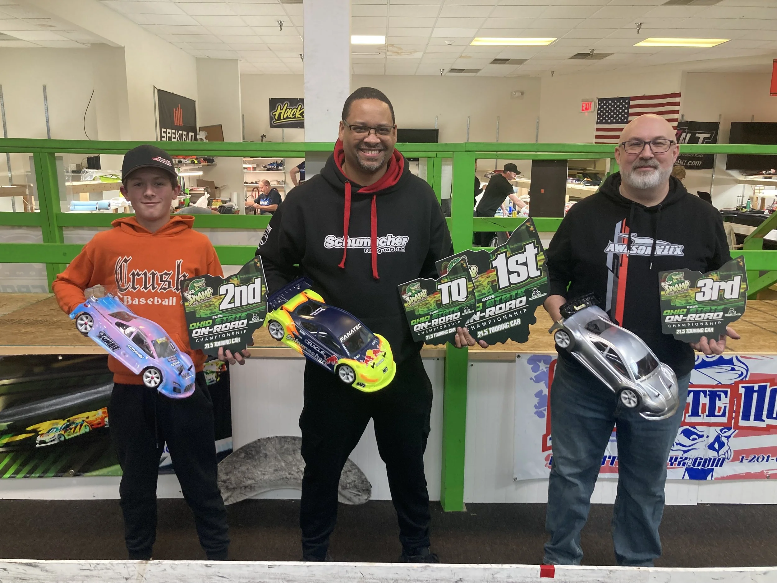 The Black Swamp RC Raceway hosted the 2nd annual Ohio State On-Road Championship presented by Dumper’s Speed Shop. As expected, several top racers showed up to put on a show. Friday practice, racers were setting some incredible paces around the track. That trend did not stop there as early Saturday morning practice showed the grip was still there and the lap pace was not slowing down. We topped last years entry list, and the pits were filled almost to max capacity. If you missed this race, you won’t want to miss the next! I want to personally thank all of those that did attend this year’s race. The threat of weather may have scared off a few, but overall, a great turnout. As always, the racing was competitive, fast and exciting to watch.